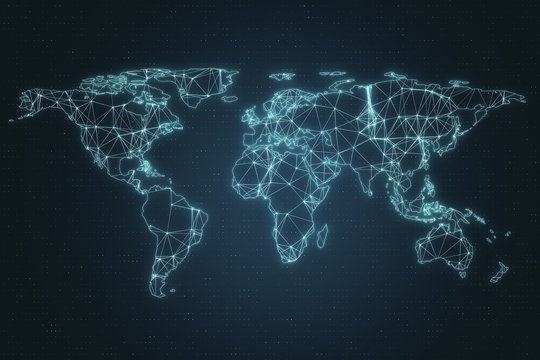 Digital data connections across global map and network