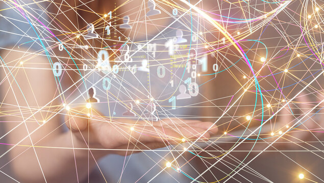 Artificial intelligence concept with digital connections in office