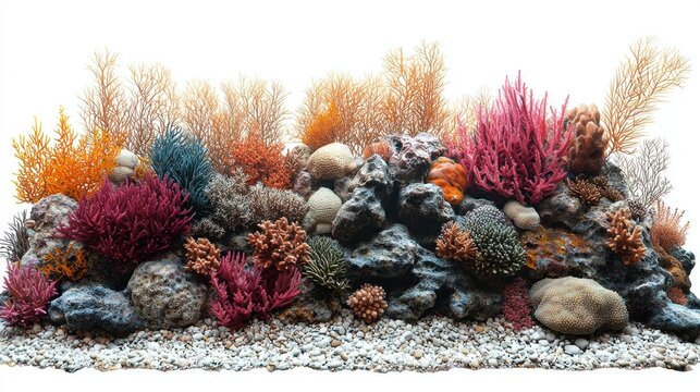 Biomorphic coral colonies growing on circuit board macro backdrop for tech ecology concept