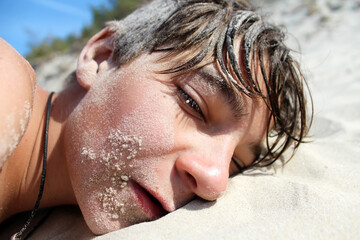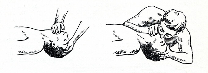 Lesson of artificial respiration. Lifeguard giving drowning mouth-to-mouth resuscitation