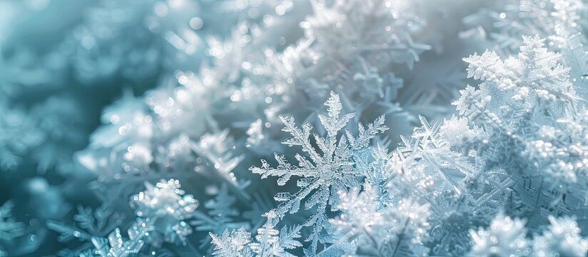 Snowflakes on a gentle background with copy space image perfect for winter themed designs like cards banners or posters
