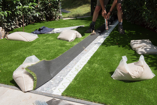 Artificial grass/lawn turf in the front yard of a modern home/residential house.