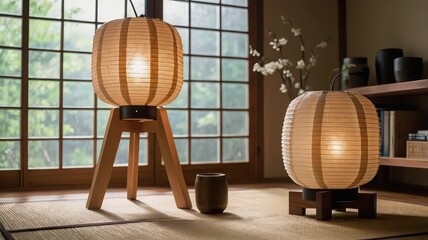 Zenith Paper Lantern Duo: Authentic Japanese Design with Warm Ambient Glow for a Serene & Minimalist Interior Space