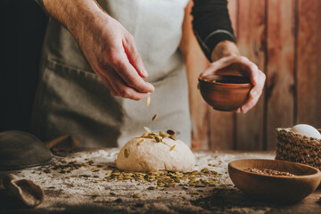 Male baker skillfully preparing sourdough bread