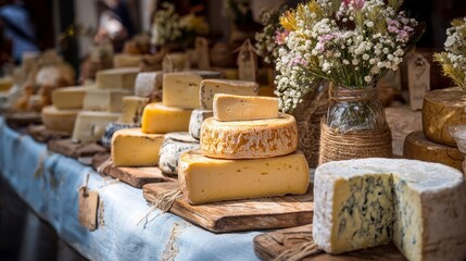 Artisan bearded vendor proudly displaying fresh cheese selection