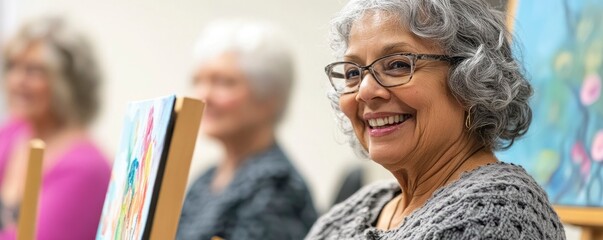 Seniors doing a group painting lesson encouraging older persons' creativity and involvement in the community