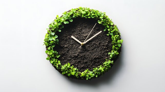 Innovative round clock design featuring soil and green plants showcases creativity and eco-friendly decor