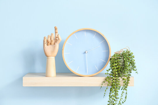 Elegant wall clock illuminated by sunrise in minimalistic interior, tranquility