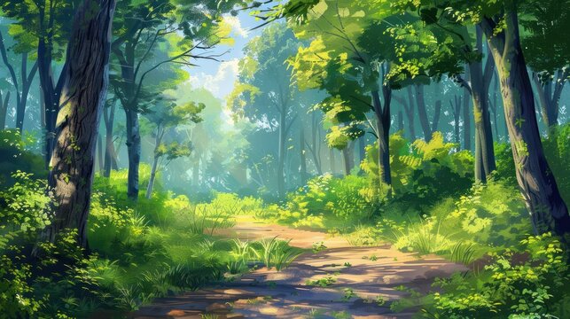 Artistic conception of beautiful landscape painting of nature of forest, background illustration, tender and dreamy design