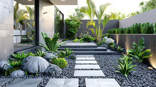 Elegant japanese garden design with curved pathways tranquil setting nature serenity