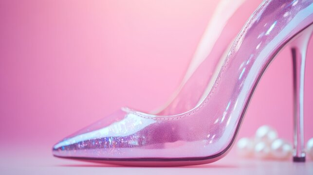 A stunning pair of glossy pink high heels elegantly displayed against a soft pink background, capturing glamour and sophistication for fashion enthusiasts and imagery lovers.