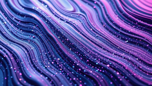 Abstract Waves of Colorful Texture with Glittering Particles in Motion on a Dark Background