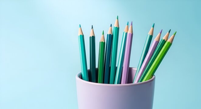 A vibrant array of colored pencils neatly arranged on a wooden surface, offering a creative and artistic aesthetic.