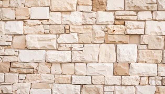 Close-up of a textured stone wall made of staggered rectangular bricks in warm tones—beige, cream, peach, and tan—highlighting natural variation, earthy elegance, and architectural charm.