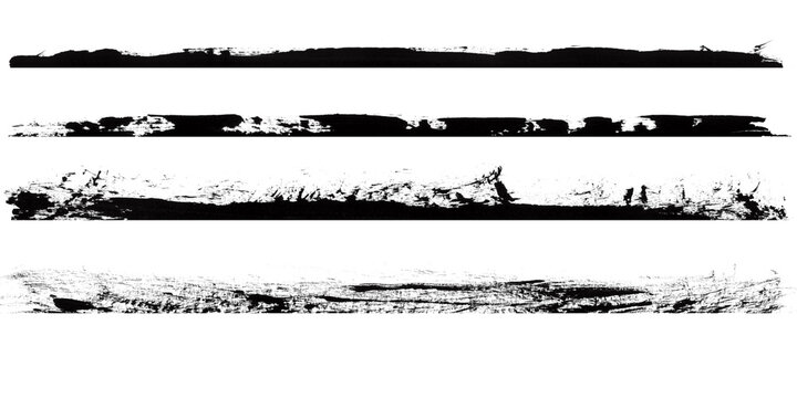 Four grunge brush stroke lines isolated on transparent background, abstract artistic elements for design