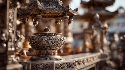 Intricate metalwork artistry in asian-inspired decorative objects and structure