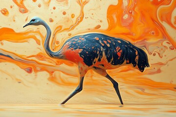 Abstract ostrich art print, modern bird painting, colorful animal artwork for home decor and wall art ideas