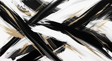 Dynamic abstract drawing with bold black and white strokes creating a sense of movement and energy on beige paper