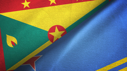 Seychelles and Aruba two flags textile cloth, fabric texture