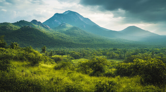 The Mountain Arunachala is oldest mountain on earth and the sunrise in cloud mountain view