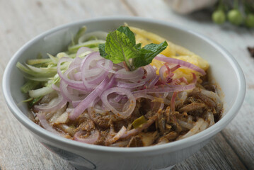 Assam Laksa (Noddle in Tangy Fish Gravy) is a Special Malaysian Food Popular in Penang