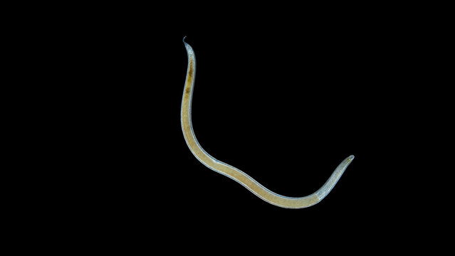 Worm Nematoda under microscope, Phylum Protostomia, free-living nematodes inhabit soil, freshwater and sea. Red Sea