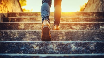 Active lifestyle, athlete climbing stairs emphasizing movement and fitness