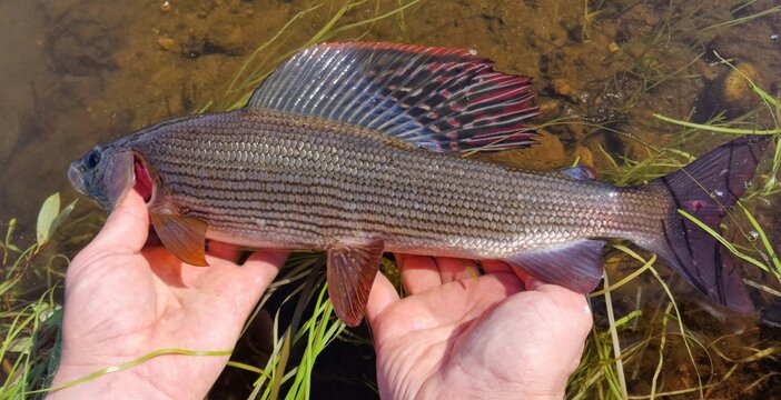 European grayling (Thymallus thymallus) Ain river, France, June 2009
