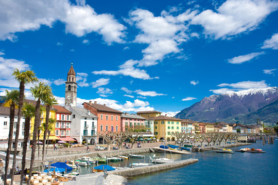 Ascona, Switzerland townscape on the shores of Lake Maggiore