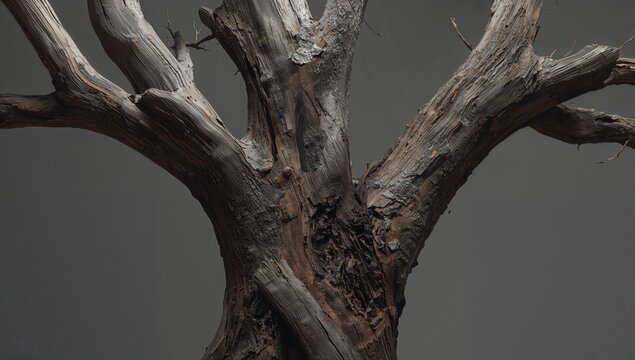Texture of burnt log with charred bark and ash scarring