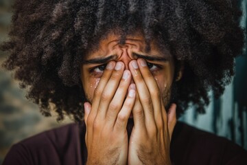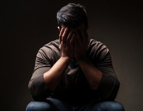 Desperate Man Covering Face in Sorrow and Mental Anguish