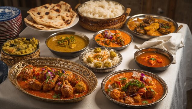 Assorted Indian cuisine, rich in spices and flavors, beneficial for a diverse diet