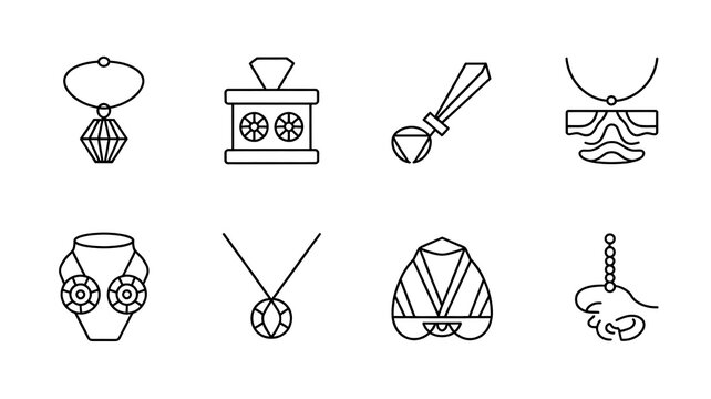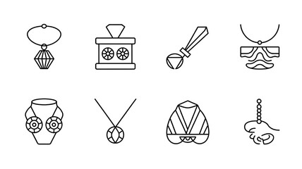 traditional Japanese jewelers icon set.Editable line icons. on white vector illustration.