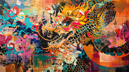 A striking painting of a dragon, vividly rendered with bold colors and intricate details.