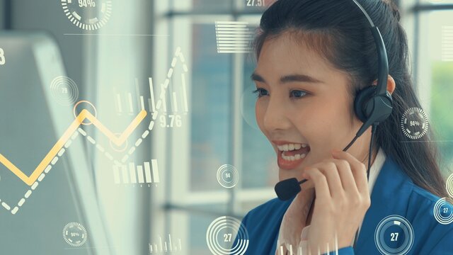Customer support call center provide data in conceptual vision . Business and communication technology concept .