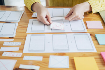 Portrait of people, digital entrepreneurs working on digital screen, line of code. A software developer works on innovative technologies using large amounts of data. Technology concept, modernity.