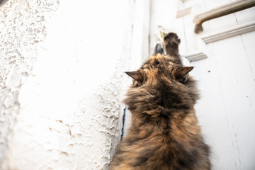 A cat asking to be let inside the house