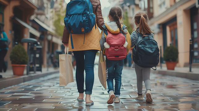 Back to school sign with colorful school supplies and backpacks