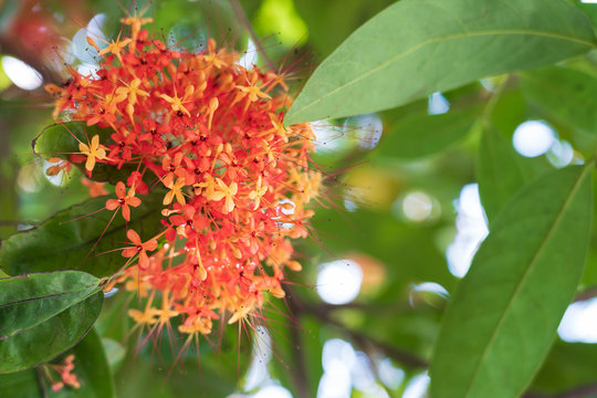 Ashoka or Asoka Orange Flowers in the gardenred and yellow flower