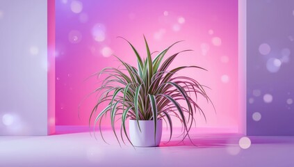 Indoor Chlorophytum spider plant displaying narrow green and white striped leaves for aesthetic purposes, World Environment Day