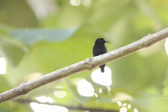 The black sunbird (Leptocoma aspasia cochrani) is a species of bird in the family Nectariniidae. It is found in eastern Indonesia and New Guinea. This photo was taken in Waigeo island, Indonesia.
