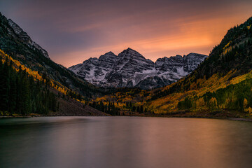 Maroon Bells during sunset, Aspen, Colorado, USA
