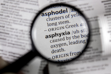 The word or phrase asphyxia in a dictionary.