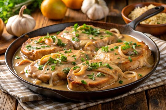 Creamy smothered pork chops in mushroom sauce