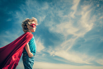 Concept of a child as a superhero, symbolizing childhood, imagination, and aspirations