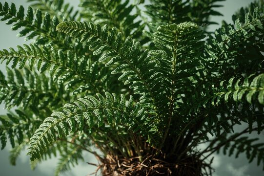 A lush, asplenium antiquum fern plant isolated over transparent background, PNG cut-out