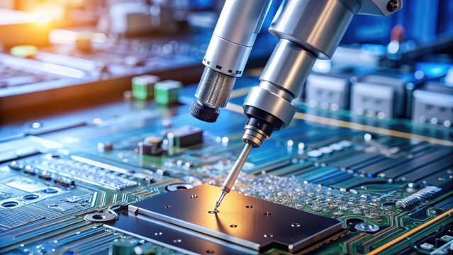 Robotic arm soldering pcb for precision electronics manufacturing and automated assembly