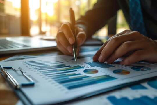 Business audit stock financial finance management on analysis data strategy with graph accounting marketing or report chart economy investment research profit concept