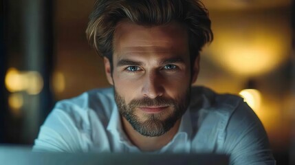 A businessman interacts with a digital tablet showcasing a Gantt chart, task list, and calendar, representing modern project management in a contemporary office environment. Gantry