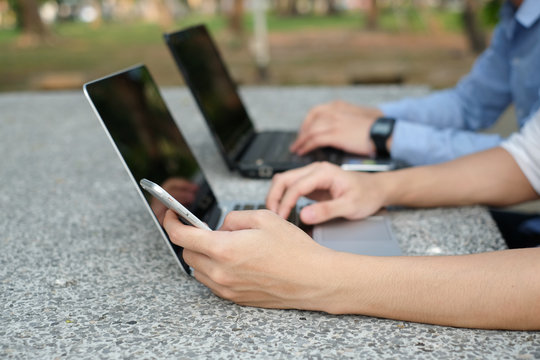 close up business man working on smart phone concept.